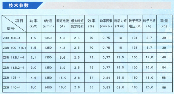 ZDR系列電動機采用380V電源,50Hz,基本工作制為S4,負載持續率25%,等效起動次數120次/小時。